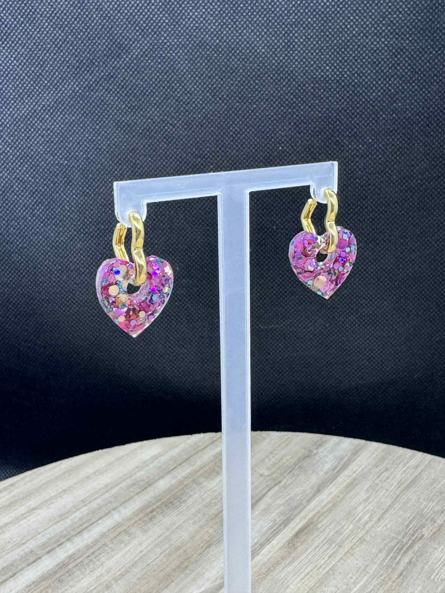 petites créoles coeur or avec pampilles coeur pailletées roses