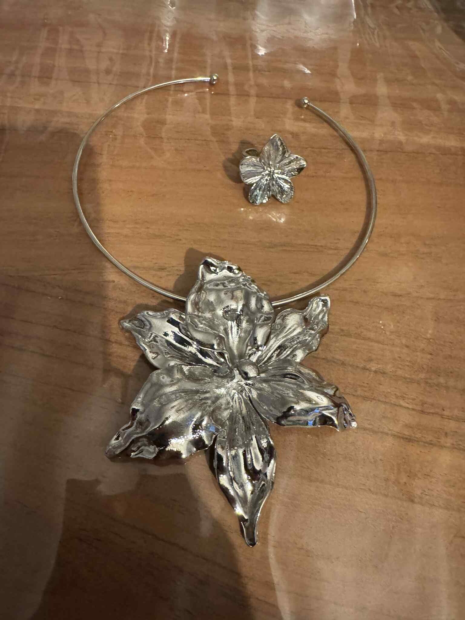 1 collier ras de cou argenté grosse fleur a 10 eur