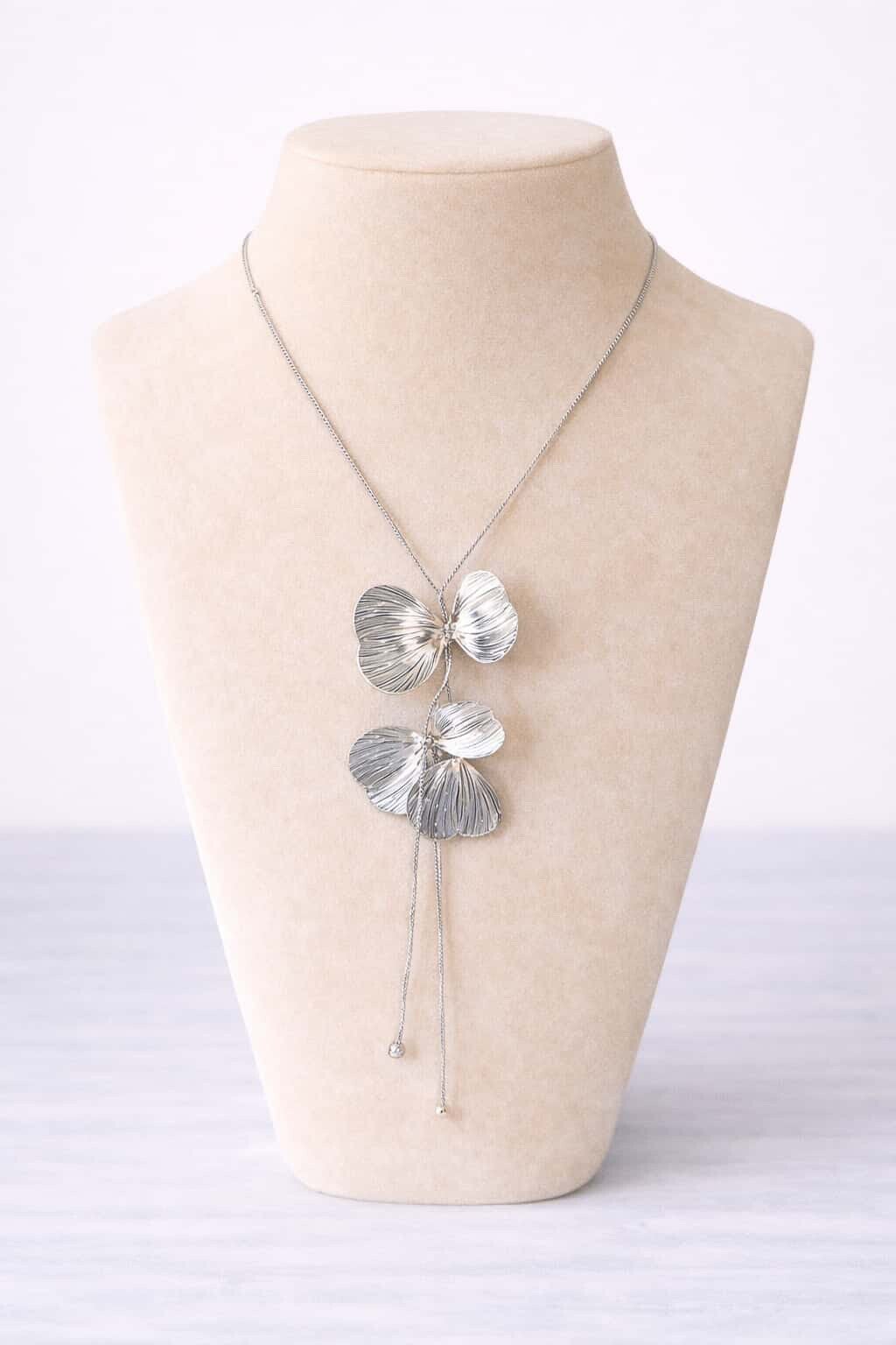 sautoir argenté plusieurs fleurs