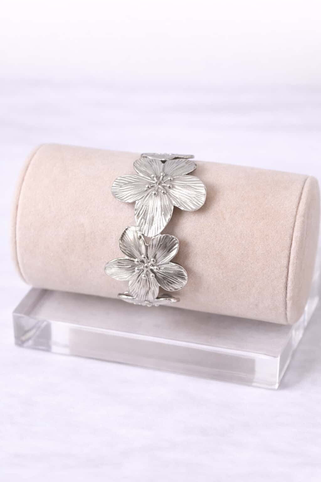 Bracelet fleurs argenté